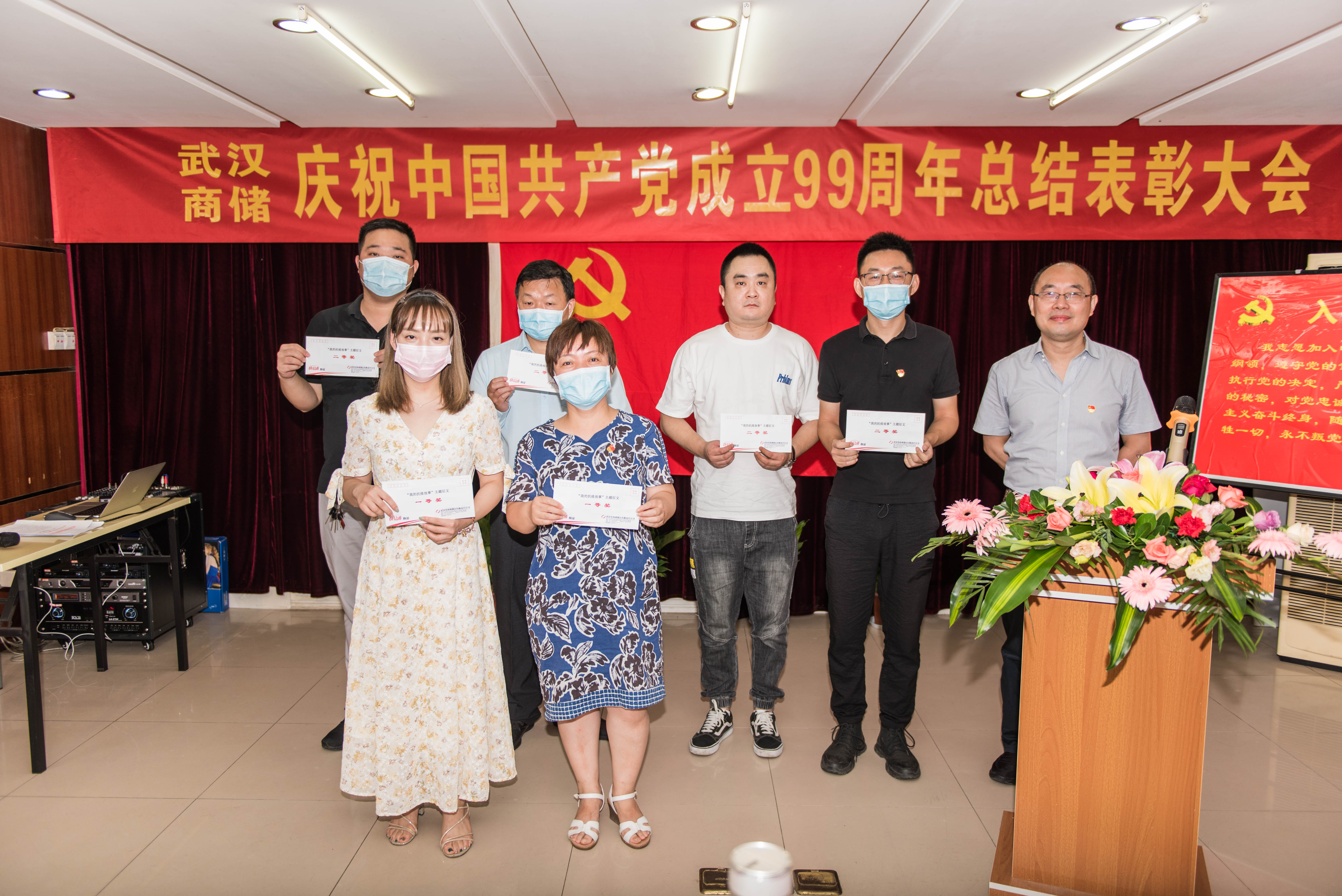 6月30日上午,武漢市商業(yè)儲(chǔ)運(yùn)有限責(zé)任公司隆重召開(kāi)慶祝中國(guó)共產(chǎn)黨成立99周年總結(jié)表彰大會(huì),會(huì)議進(jìn)行了溫誓詞紀(jì)念活動(dòng),表彰了公司先進(jìn)基層黨組織、優(yōu)秀黨員和優(yōu)秀黨務(wù)工作者,通報(bào)獎(jiǎng)勵(lì)“我的抗疫故事”優(yōu)秀征文,安排布置2020年公司黨建工作、意識(shí)形態(tài)工作和黨風(fēng)廉政工作。公司黨委委員、副總經(jīng)理余光輝主持會(huì)議,公司全體領(lǐng)導(dǎo)班子成員、中層管理人員、各黨支部書(shū)記、黨務(wù)工作者、黨員代表共50人參加了會(huì)議。